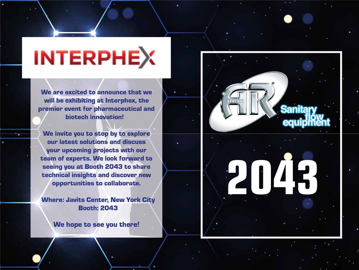 Siamo entusiasti di annunciare che quest'anno voleremo negli Stati Uniti per partecipare a INTERPHEX 2026, l'evento leader mondiale dedicato all'innovazione farmaceutica e biotecnologica.